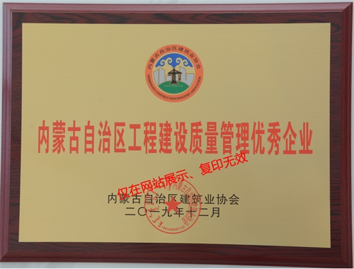 2019年荣获内蒙古自治区建设质量管理优秀企业