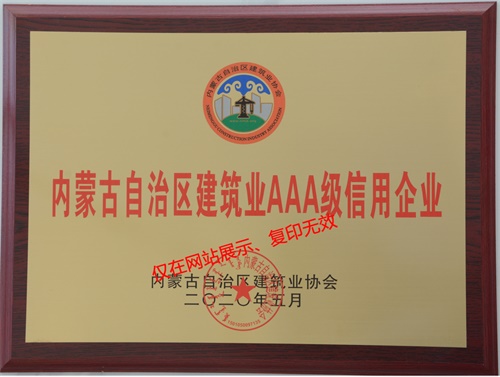 2020年荣获内蒙古AAA级信用企业