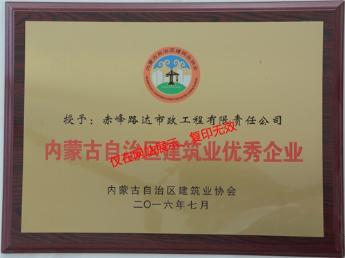 2016年荣获内蒙古自治区建筑业优秀企业